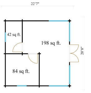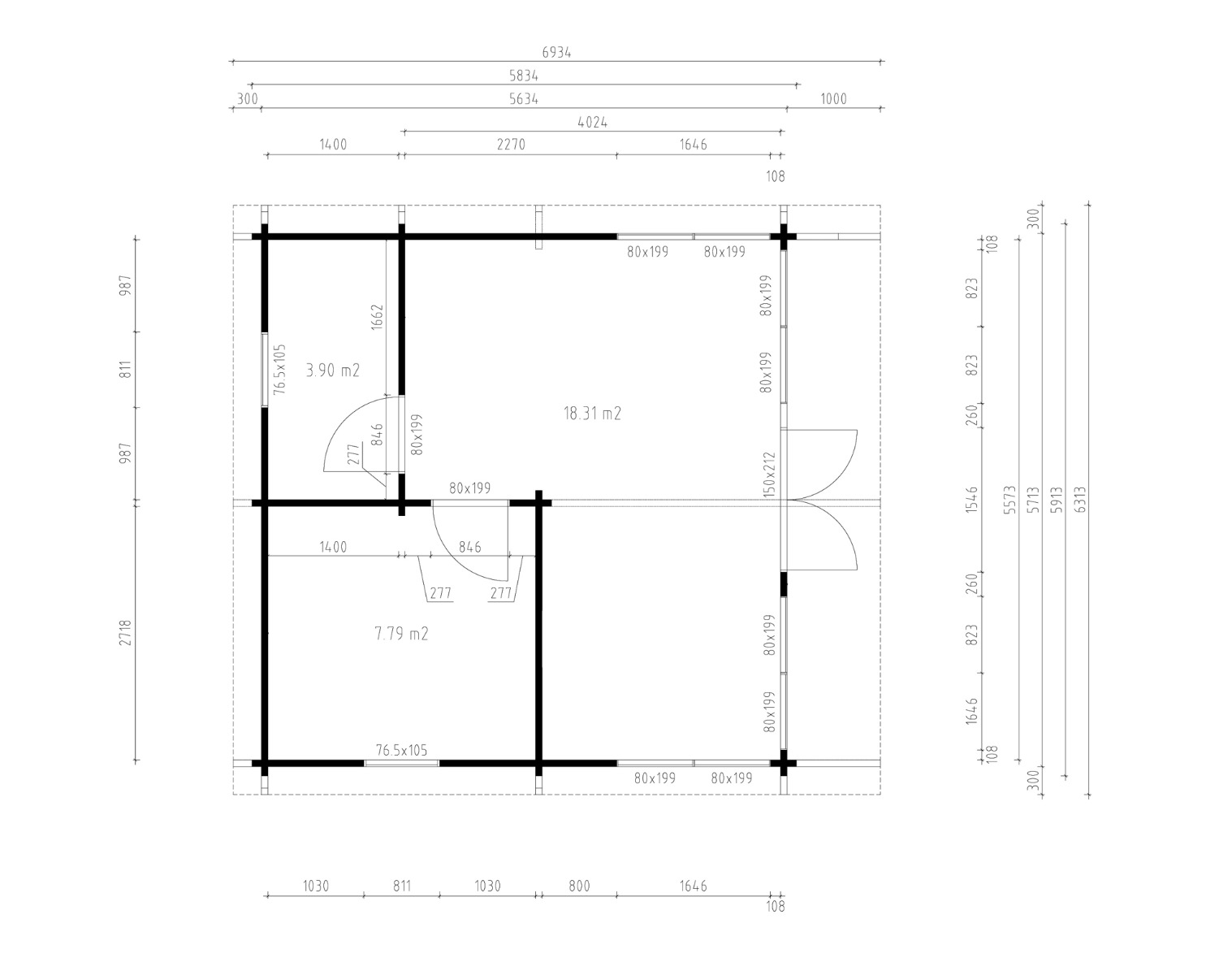 – стеновой комплект из бруса 44х145мм (стены и прогоны кровли),