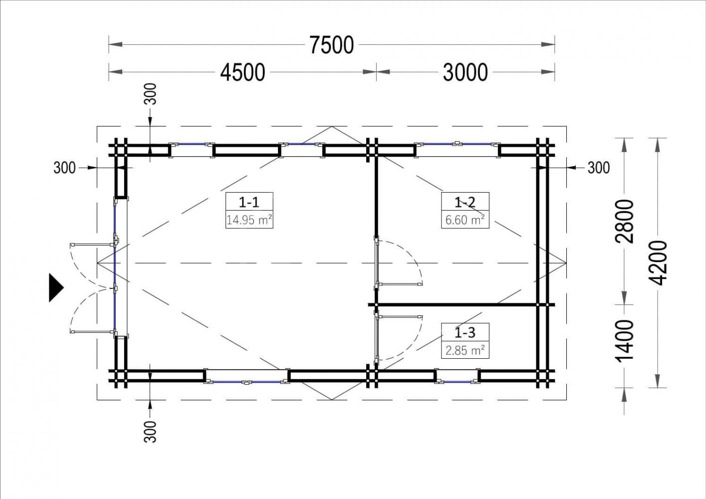 – стеновой комплект из бруса 44х145мм (стены и прогоны кровли),