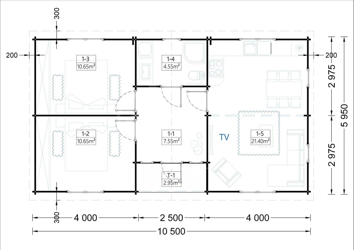 – стеновой комплект из бруса 44х145мм (стены и прогоны кровли),