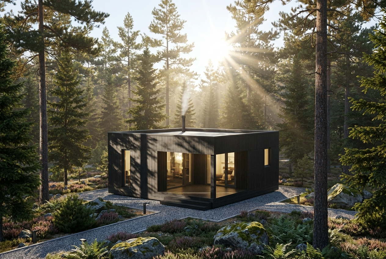 Современный модульный дом для постоянного проживания – идеальное решение для небольшого красивого участка.