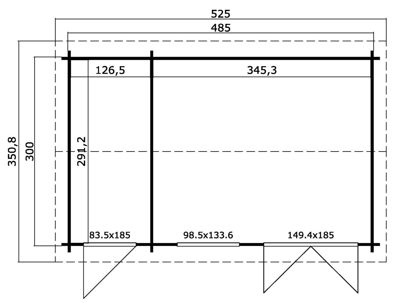 – стеновой комплект из бруса 44х145мм (стены и прогоны кровли),